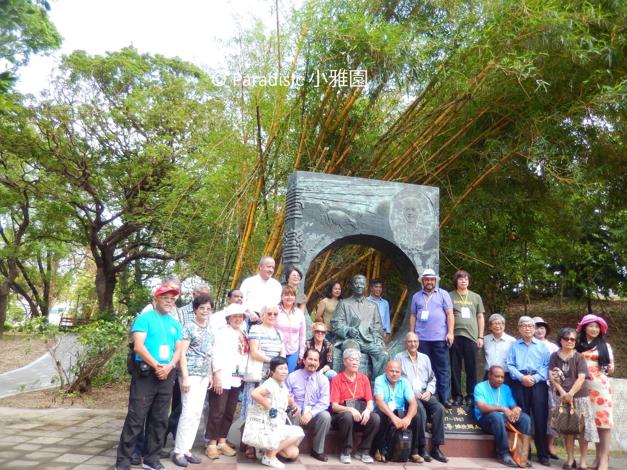 9月5日,國際詩人一行到「鹽分地帶文學」訪問,於佳里中山公園吳新榮銅像參觀。由我朗頌1931年吳新榮在曰本東京用毌語書寫的詩歌。