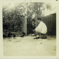右下圖:吳新榮於小雅園西側,養雞之樂。