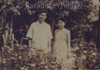 1953 夏,吳新榮、林榮樑於小雅園西側花園。