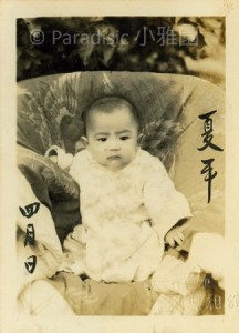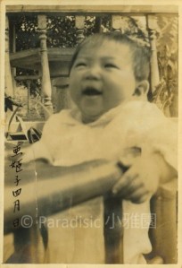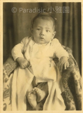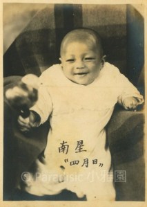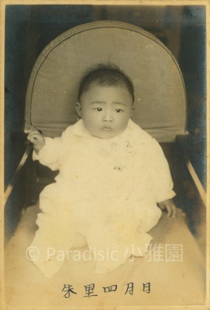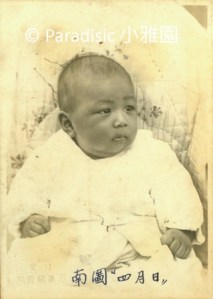 左圖:小雅園首位報到的男孩子是左圖南星。而首位報到的女孩子是右圖朱里。前後的子孫輩,一律有滿月、四月與週歲照,除了遇到二二八的五子夏統最吃虧,沒有滿月照、四月與週歲照。