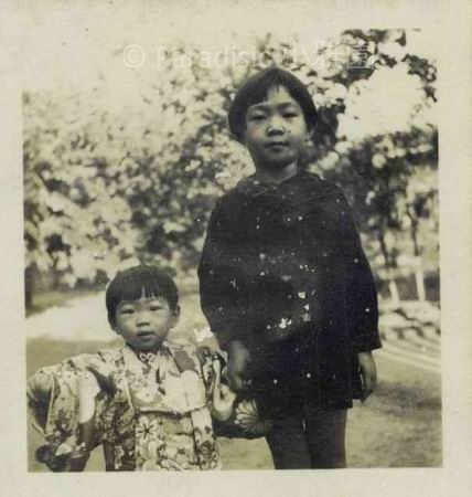 左下圖:1942年1月,幼小亞姬與姊姊朱里攝於小雅園,不知兩個月之後將失去慈母。