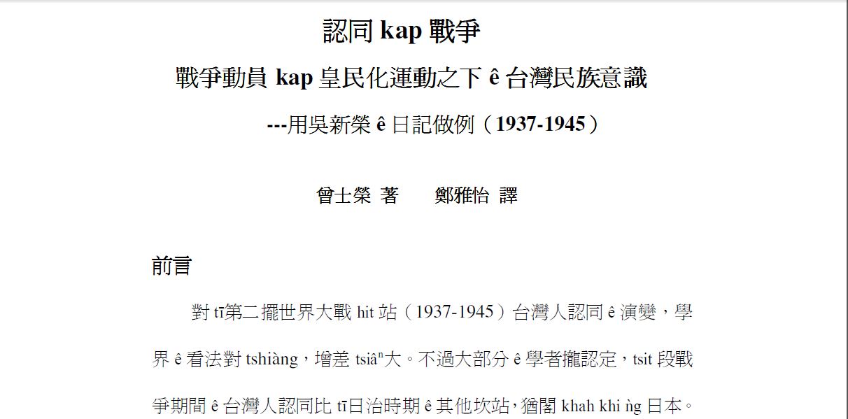 翻譯者: 鄭雅怡 臺灣師範大學臺文系博士研究生