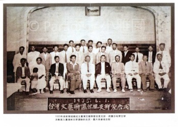 會,被推為起草委員。當日進行文藝聯盟主辦之全台文藝大會。照片中一排