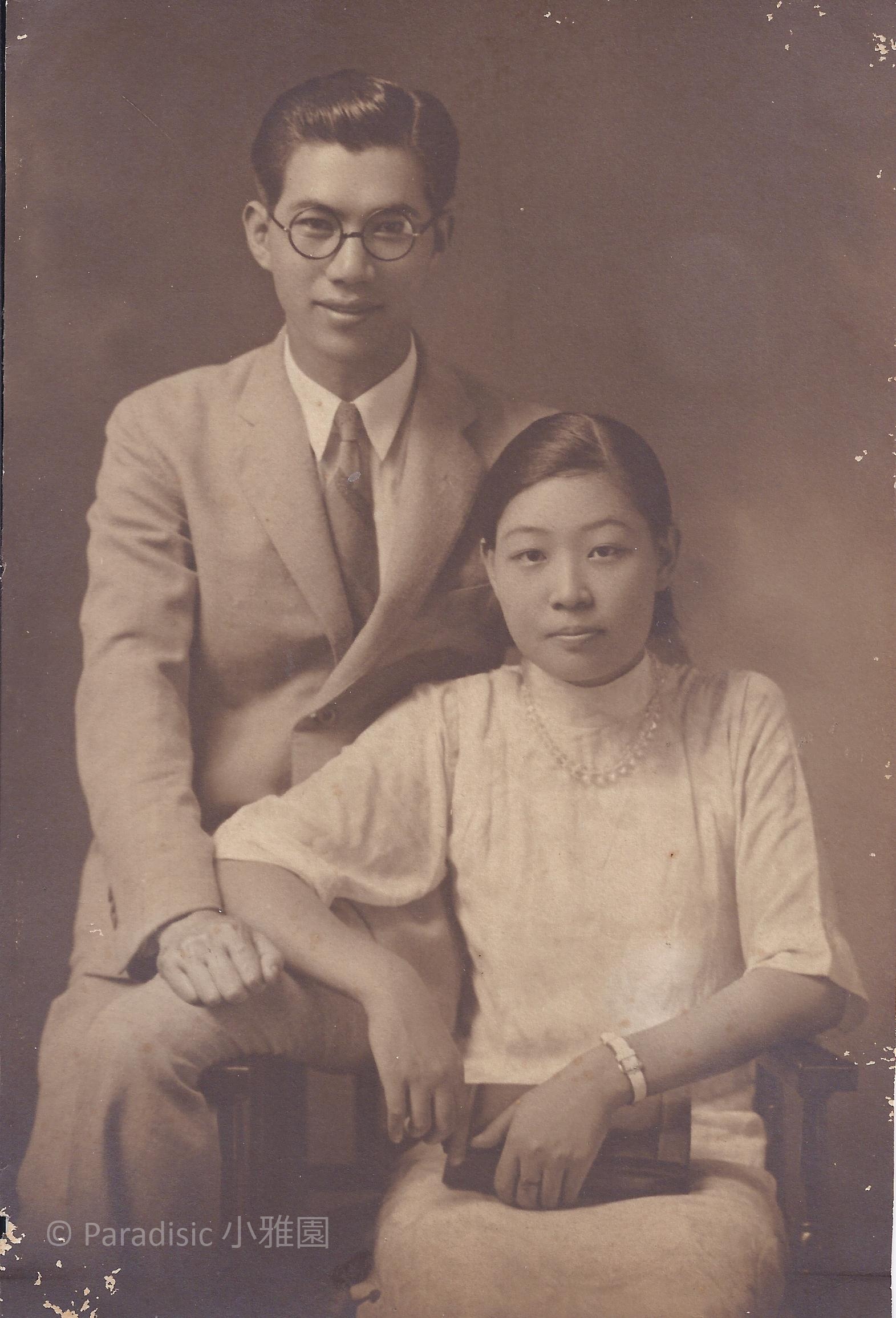 上圖: 1932年4月於六甲訂婚,7月毛雪於東京與新榮相聚之照。