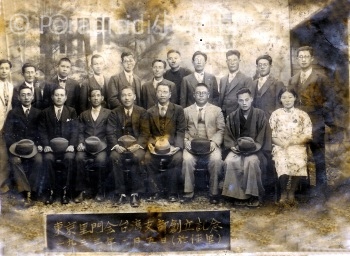 上圖:1933年2月5日。吳新榮於佳里創立「東京里門會台灣支部」一排右一毛雪、右四吳萱草、右五吳乃占、右八鄭國浈。