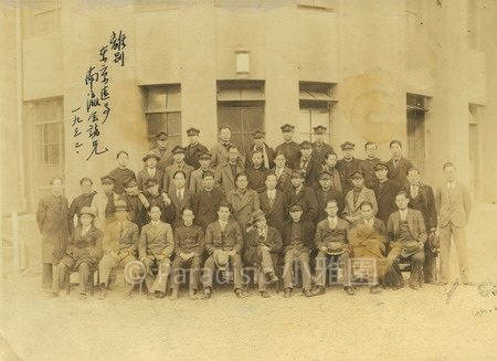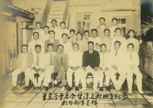 左圖: 1932年(昭和7)吳新榮先生畢業於東京醫專。此為離別東醫與南瀛會諸兄紀念照。一排此期同班同學、左一為彰化謝振聲、左二台東陳振祥、左三台南縣賴輝煌、左四嘉義潘木枝、左五苗栗詹添慶、左六台南市王柏青、左七員林蔡欉、左八吳新榮、左九彰化張有傳、左十新竹林松生。