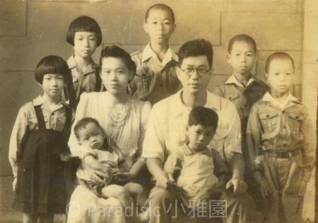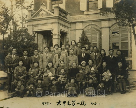 左圖: 1941年8月,毛雪帶五子女回六甲拜祖,背景為她的伯母之