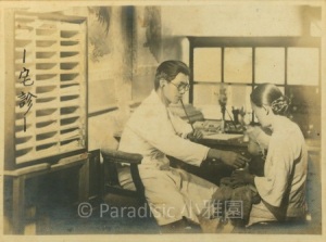 左圖:1936年,吳新榮於佳里中山路佳里醫院門診。右圖:1936年,吳新榮於佳里中山路佳里醫院往診。