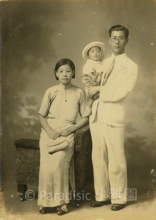 上圖:1934年11月9日,南星周歲時,吳新榮和毛雪攜子合影之紀念照。