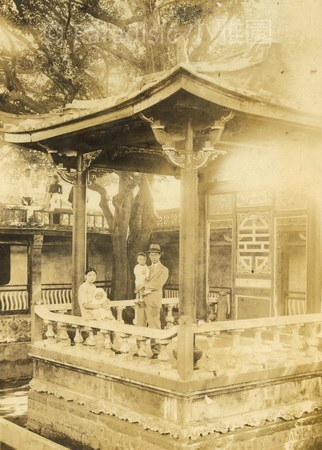 上圖:1935年11月,「台灣始政四十週年」紀念博覽會。11月6日,參觀台南博覽會。11月11日,參觀台北博覽會。11月13日,吳新榮攜妻子毛氏和長子南星,長女朱里遊板橋林家花園之紀念照。
