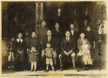 上圖:1945年元旦,送四弟吳壽坤前往東京接受陸軍飛行學校(神風特攻隊)訓練。前排坐者右起:林榮樑手抱四子吳夏雄、吳新榮、吳南圖、吳萱草、吳亞姬、吳壽坤、吳雪金。後排立者右起:吳南河、吳南星、吳朱里、吳翠霞(國卿長女)。