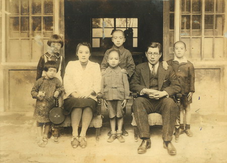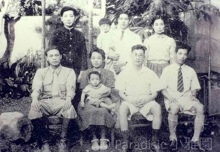 上圖: 1947年2月28日事變 後,於5月2日自首,至6月21日獲釋,於四弟壽坤之家與家人合照照。後排左一吳道明、左二吳壽坤(抱大女兒)、左三張清瑛(吳壽坤妻)。