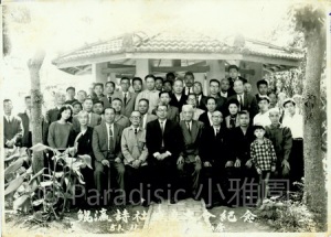 右圖:戰後吳新榮於1954年10月9日 因李鹿案二度入獄。1955年2月14日獲釋。3月16日吳敏誠等於陽明山台灣銀行俱樂部替他洗塵宴時所攝。