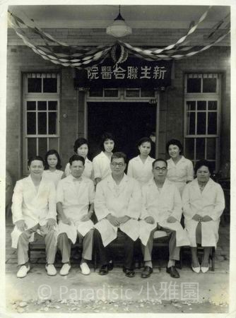 左圖:1960年8月7日。新生聯合醫院開幕。前排左起:小兒科周顯文、外科林承一、內科(院長)吳新榮、婦產科洪瑞星、護理主任邱如淵。